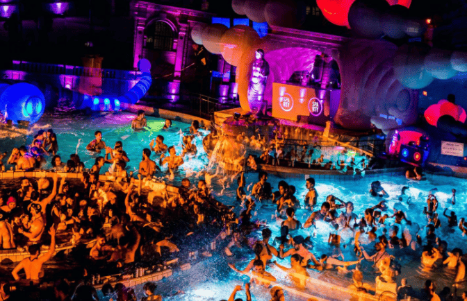 Enjoy a night in ‘The Bath Party’ at Sparty. This iconic venue has been hosting thermal bath parties for over thirty years – it is the place to be. Imagine raving in a big bathtub. Music, light shows, live performers, and unforgettable vibes come together to make this night memorable. Sparty is a club, a spa, and a festival, all in one. Crowds are lively, music is groovy, and drinks are served at poolside cocktail bars. Sparty is the Budapest nightlife experience – don’t miss it.