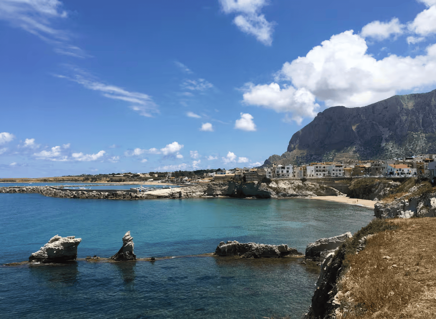 Stroll along Terrasini’s scenic seafront where dramatic cliffs, artistic benches, and turquoise waters create the perfect mix of culture and coastal charm.