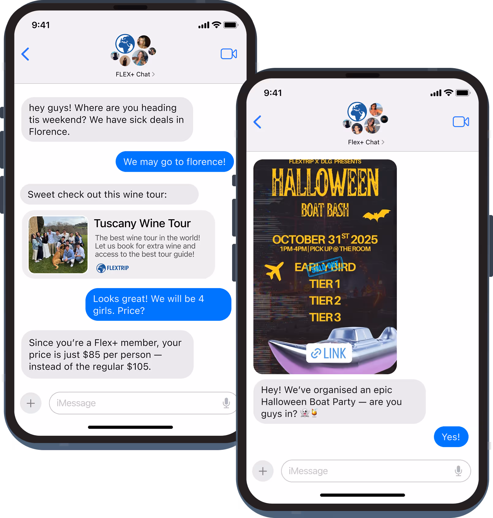"We used Flex+ for our Capri boat charter and got $20 off per person. They also connected us to promoters for Shôko Mondays in Barcelona with skipping lines."